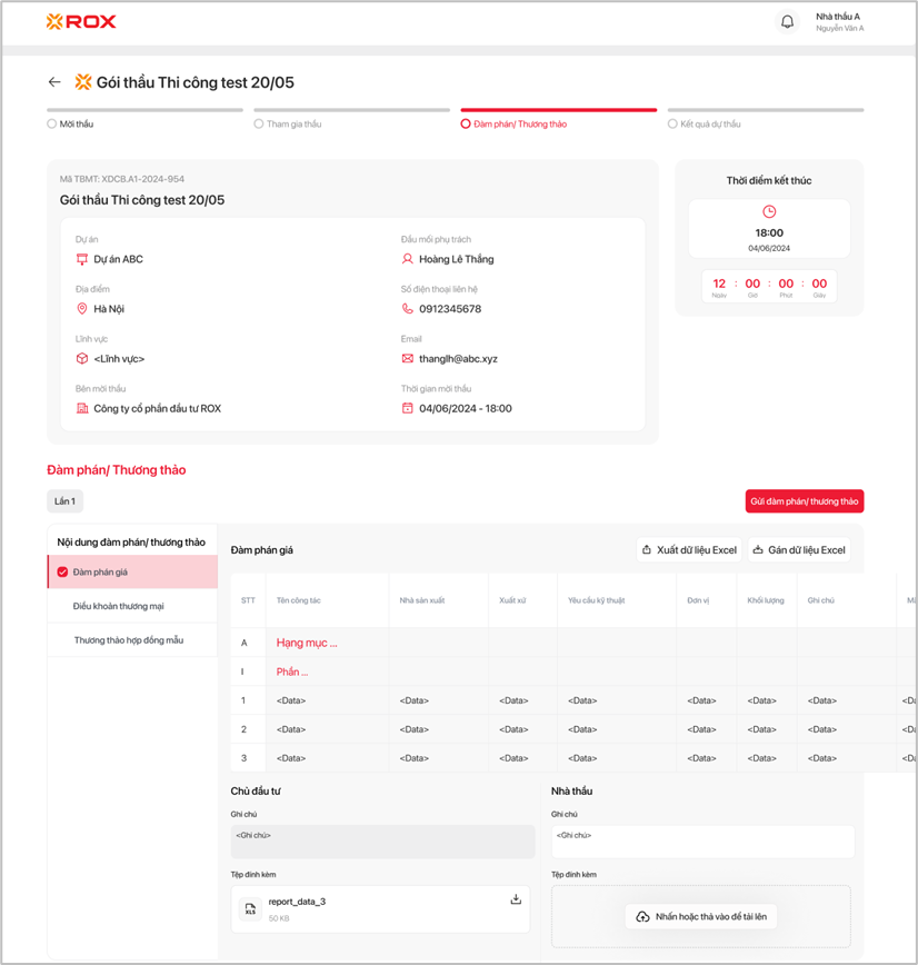 Là nhà thầu, tôi muốn thực hiện chức năng đàm phán giá sau khi nhận được thông tin từ thư ký HĐT