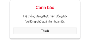 | 1 | Hệ thống đang thực hiện đồng bộ. Vui lòng chờ quá trình hoàn tất. | Nhãn hiệu (Label) | Thể hiện văn bản cảnh báo | ||