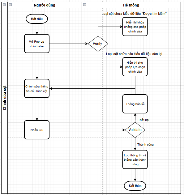| 2 | Tên cột* | Text | x | Độ dài: 255 ký tư | Cho phép người dùng nhập tên cột |