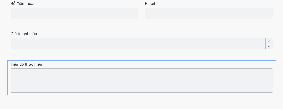 48 | Tiến độ thực hiện | Text area | Tham chiếu: 2442 - User Story - Nhân viên kế hoạch - tổng hợp soạn thảo hợp đồng | |||