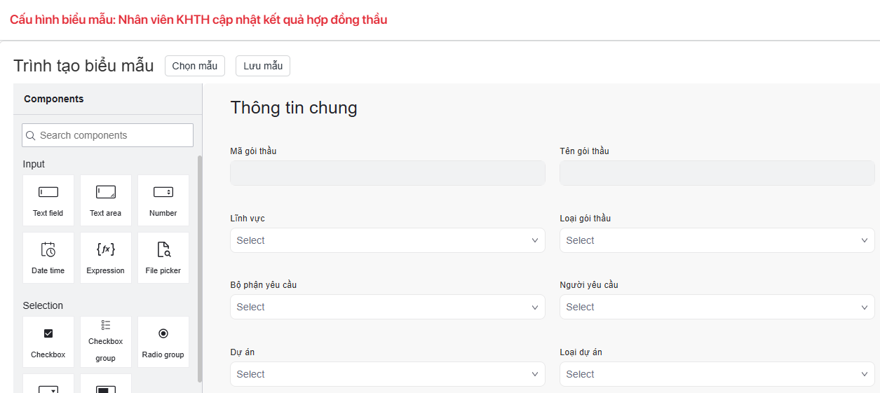 | 15 | Tài liệu đính kèm | iFrame | Không cho phép thêm mới/sửa/xóa dữ liệu | Tài liệu đính kèm gói thầu | ||