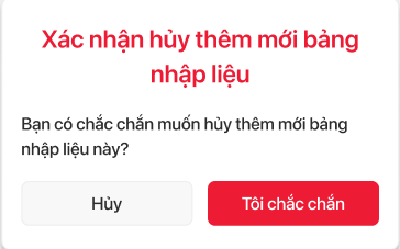 Pop-up xác nhận hủy (hủy tạo mới bảng nhập liệu) | |||||