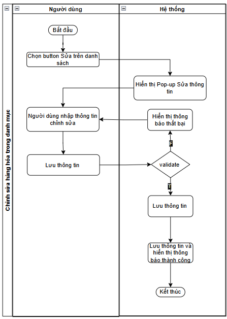 Khi người dùng chọn Button Sửa trên giao diện, gọi pop-up Sửa thông tin hàng hóa dịch vụ bao gồm