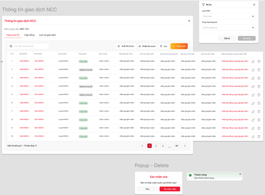 | 14 | Xóa | Button | Enable | Gọi Pop-up Xác nhận xóa |