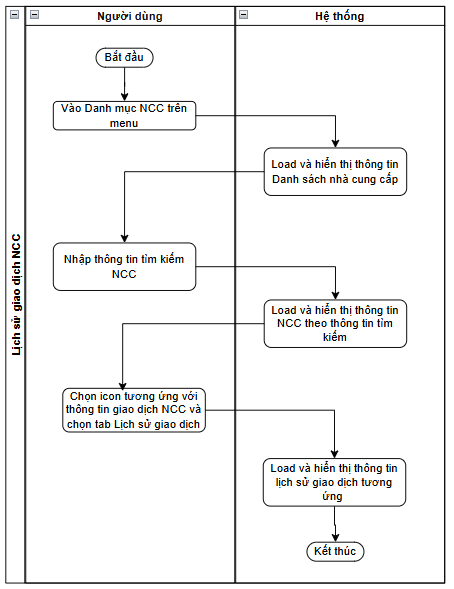 - Tôi muốn hệ thống cập nhật được thông tin lịch sử giao dịch của nhà cung cấp đang tìm kiếm chi tiết: