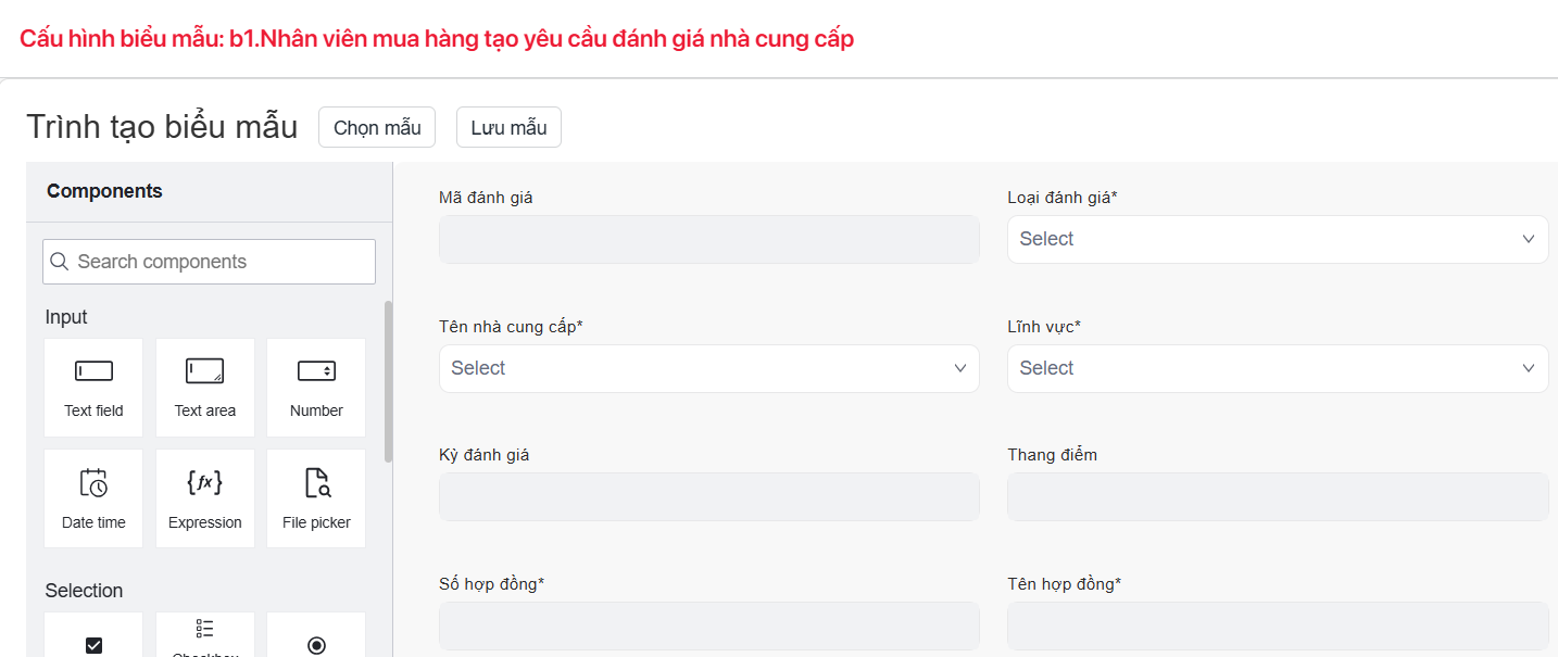| Thể hiện mã phiếu đánh giá nhà cung cấp | |
