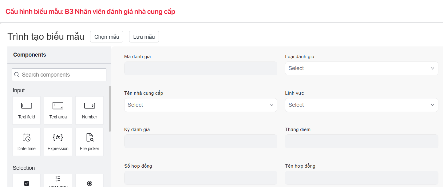 - Số hợp đồng: Kế thừa từ bước nhân viên mua hàng tạo yêu cầu đánh giá