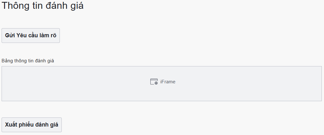 17 | Tài liệu đánh giá đính kèm | Button | - Cho phép người dùng đính kèm tài liệu đánh giá lên hệ thống - Cho phép người dùng xem lại tài liệu đính kèm - Cho phép người dùng tải về tài liệu đính kèm | |||