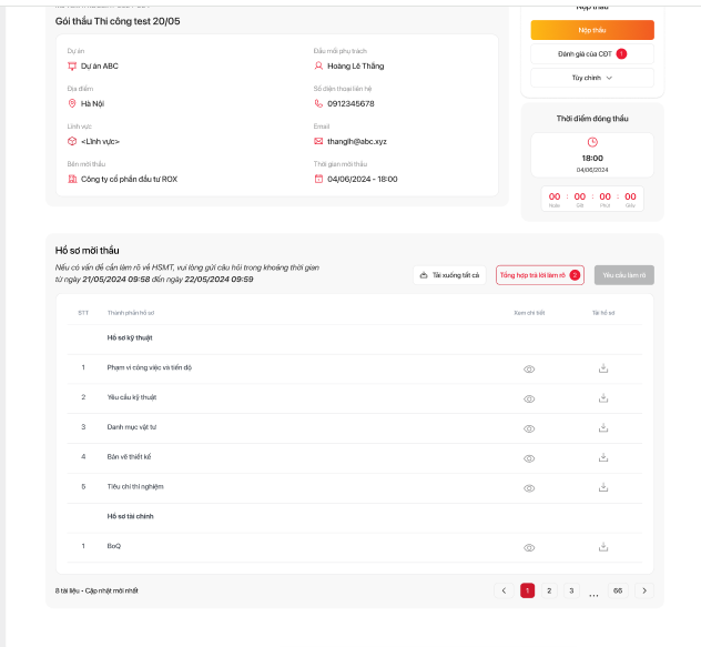 Site đấu thầu - Pop-up xem yêu cầu làm rõ