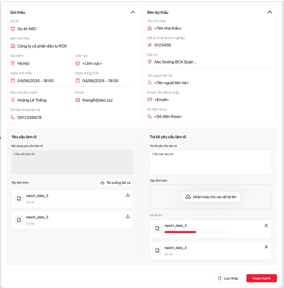 Cho phép nhà thầu đính kèm tệp yêu cầu làm rõ