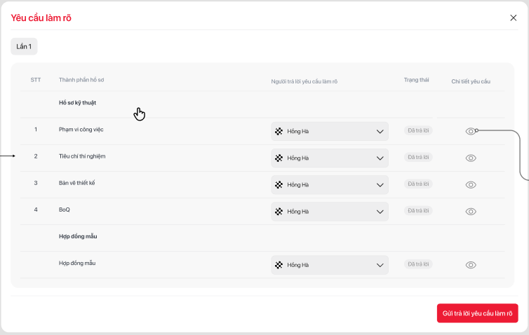 Hiển thị tệp đính kèm chủ đầu tư trả lời yêu cầu làm rõ