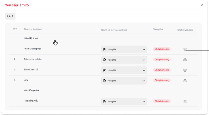 3.4.3.1 Công việc phân công làm rõ hồ sơ mời thầu