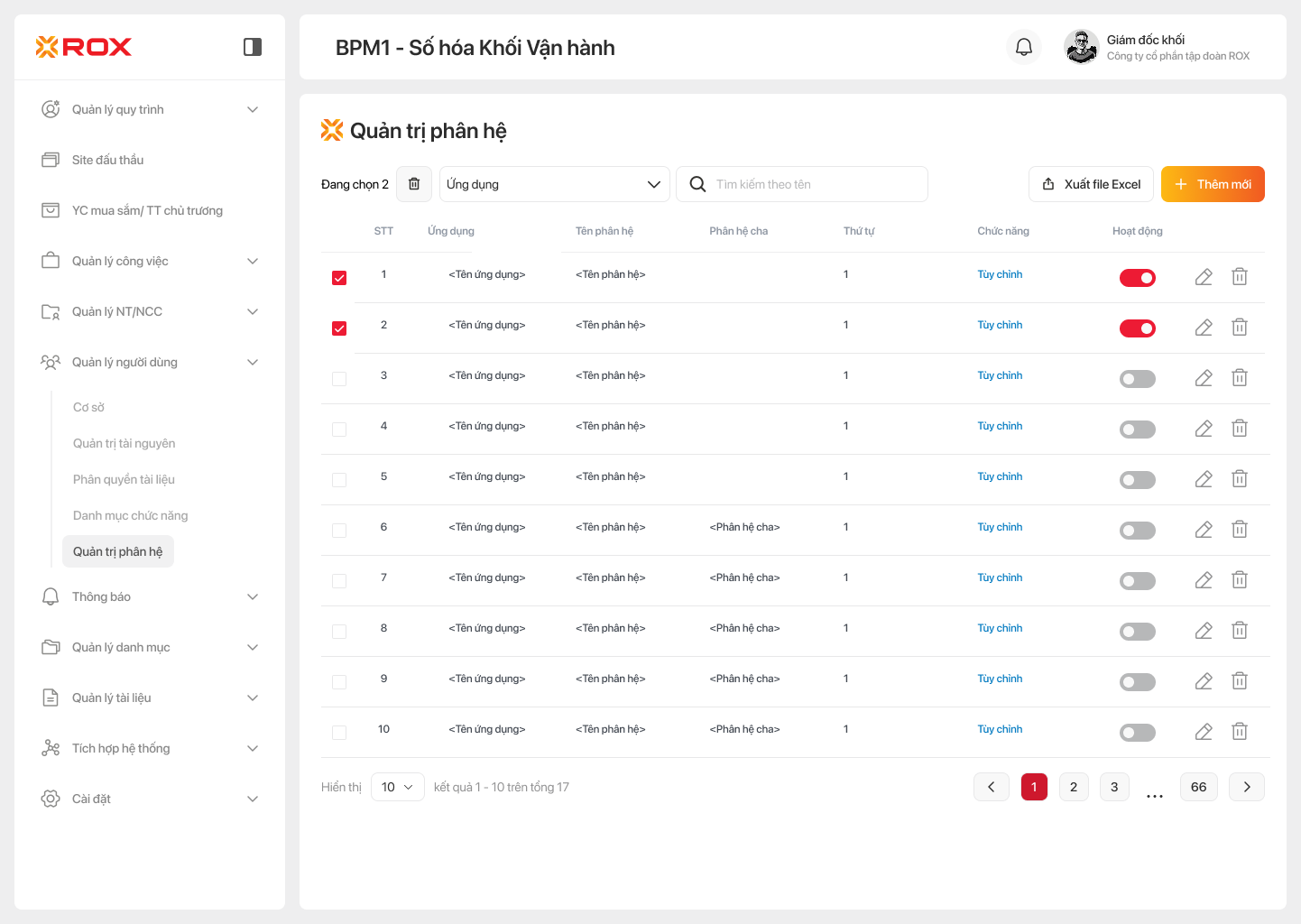 2Phân hệ chứa chức năng đã được cấu hình hành động tại người dùng. Vui lòng kiểm tra lại!