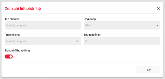 Click tên phân hệ gọi popup Xem chi tiết phân hệ