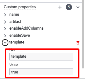 • Bước được khai báo giá trị template = true tại Custom Properties của iFrame Grid