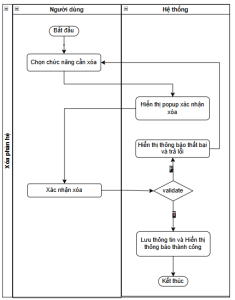 | Label+ hyper link | List các phân hệ được chọn xóa đã cấu hình chức năng trong đó: A là tên chức năng | ||