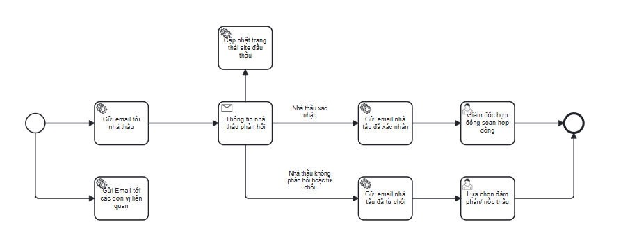 Là người thiết kế quy trình, tôi muốn thể hiện được quy trình từ bước kích Thư ký HĐT thông báo trúng thầu đến bước nhà thầu xác nhận thực hiện/từ chối gói thầu.
