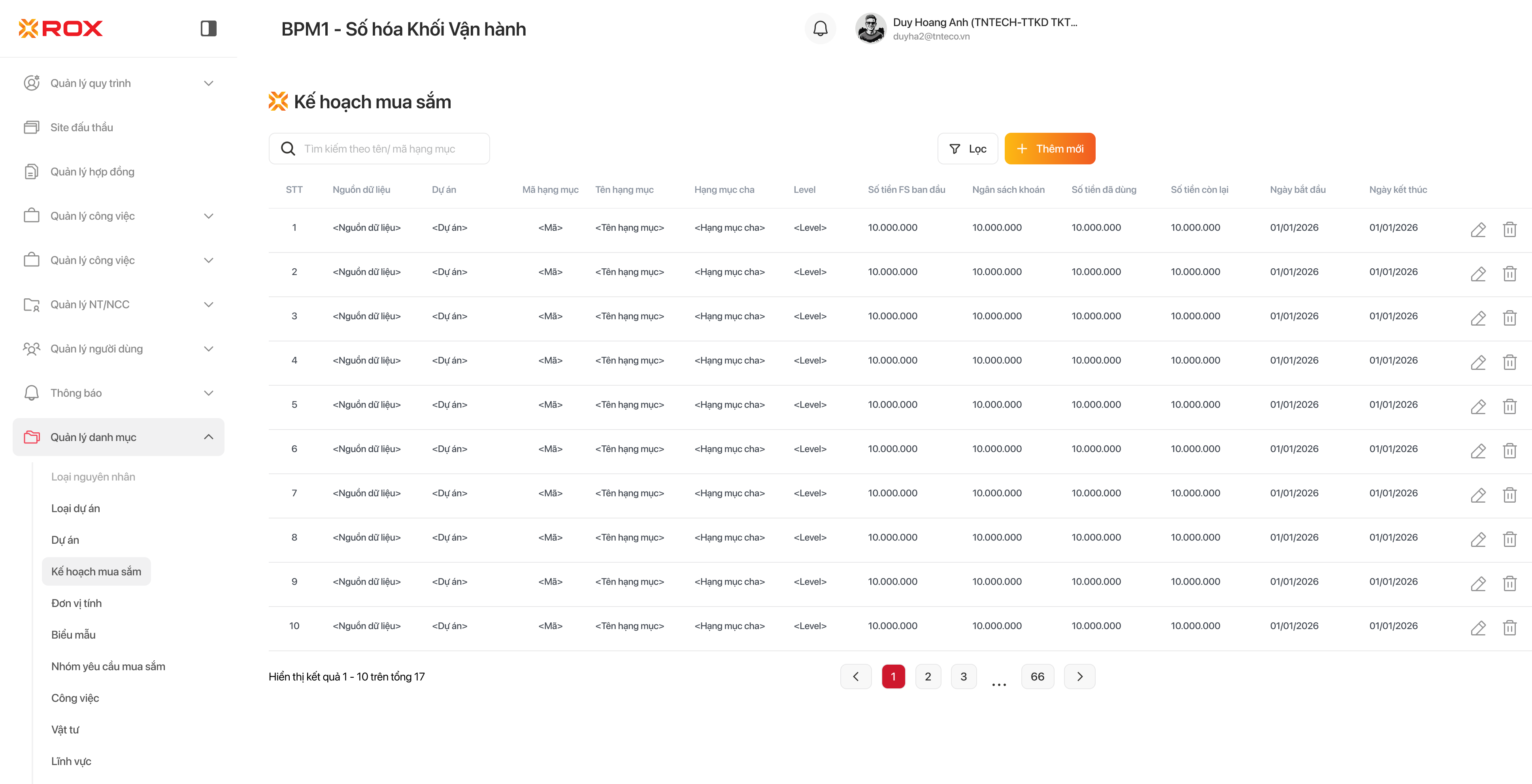 - Tôi muốn quản lý danh sách kế hoạch mua sắm bao gồm các thông tin: