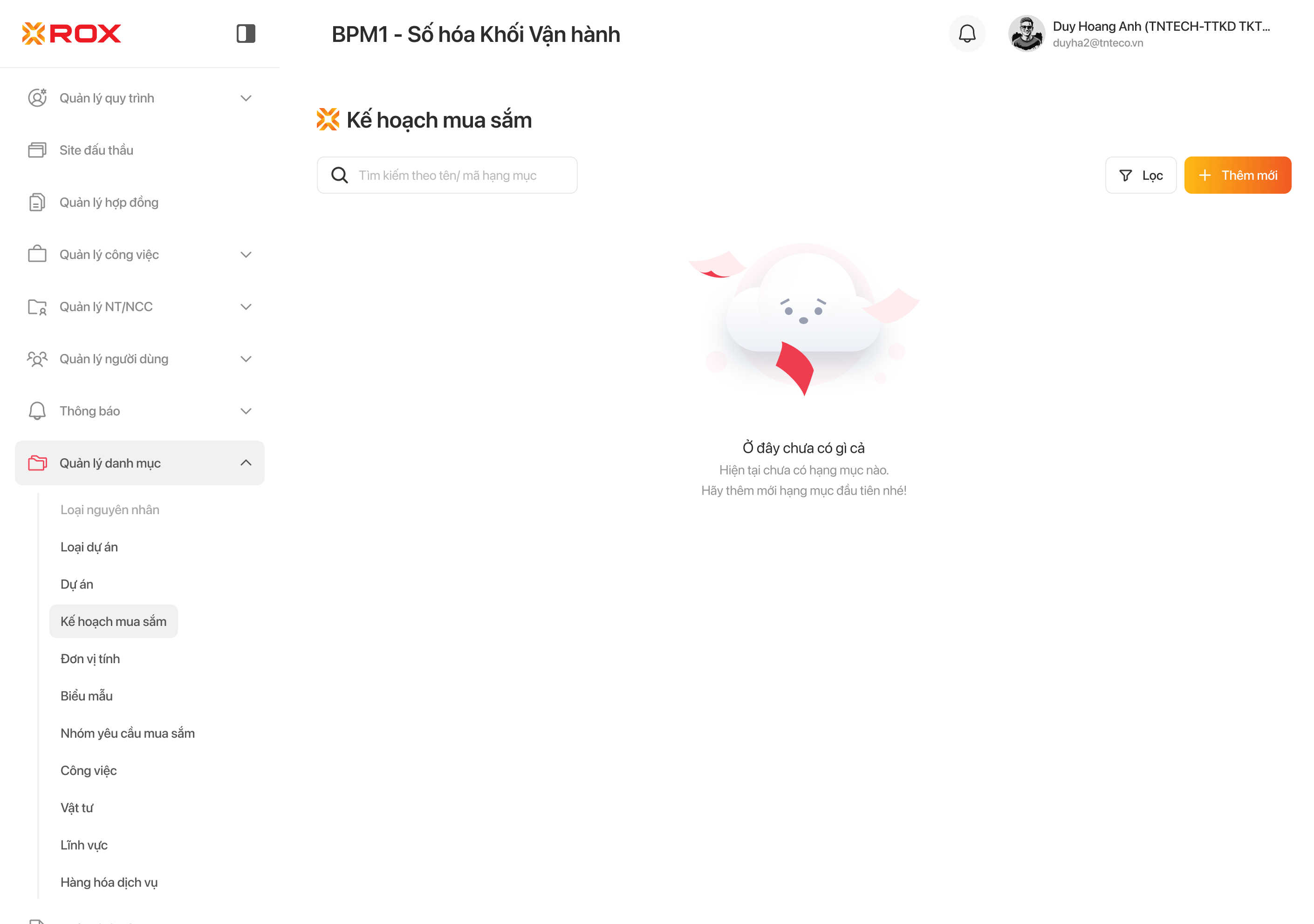 - Danh mục "Kế hoạch mua sắm" nằm trong phân hệ Quản lý danh mục