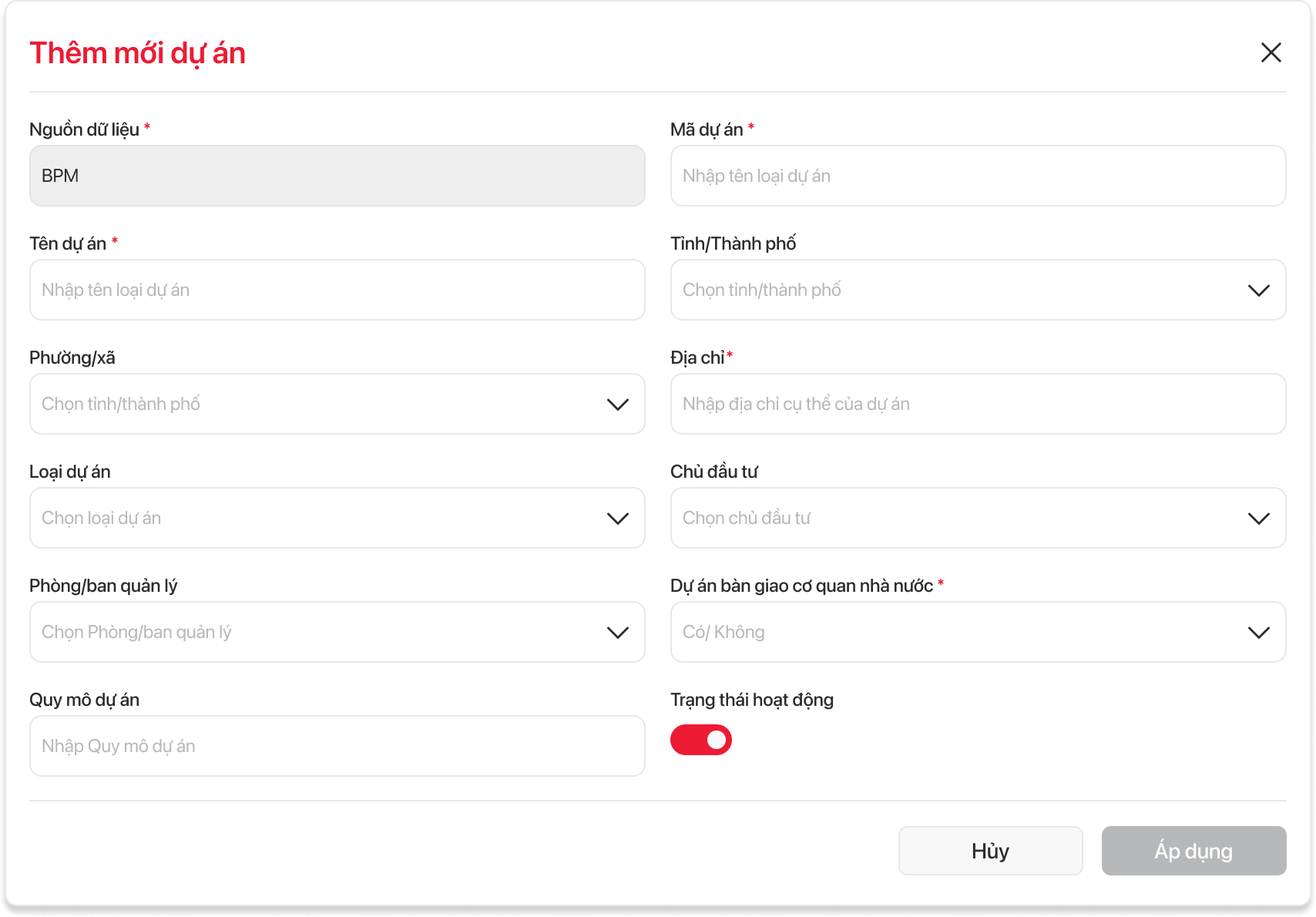 • Mã dự án không trùng với bất kỳ bản ghi nào đang có trong hệ thống.