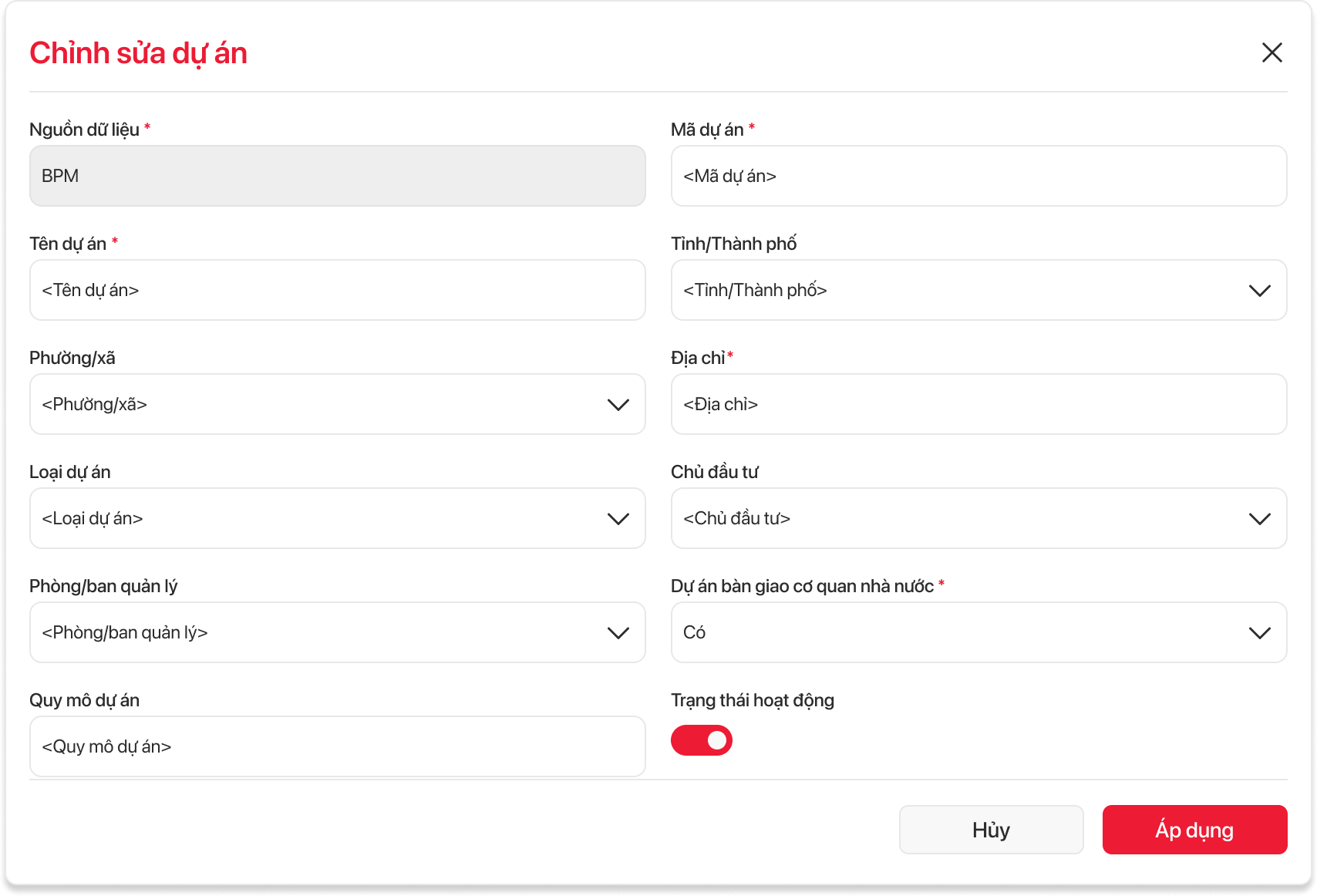 - Cho phép người dùng nhấn để hủy bỏ thao tác chỉnh sửa đơn 1 dự án.