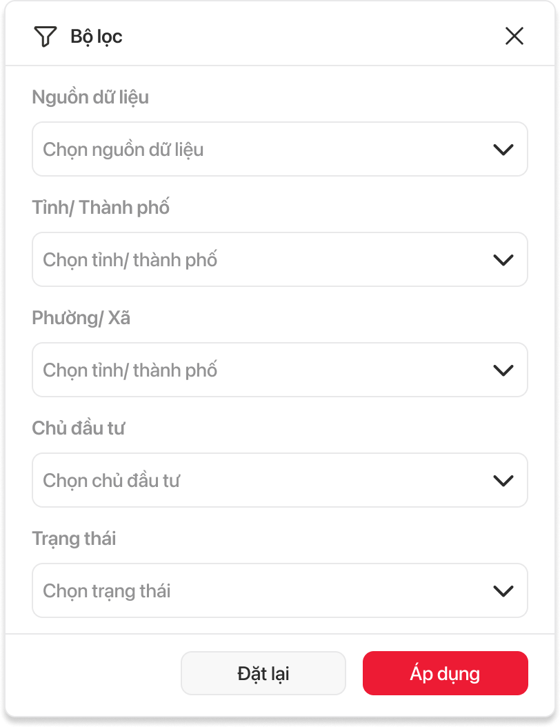 - Cho phép người dùng nhấn để đặt lại tất cả tiêu chí lọc về trạng thái mặc định ban đầu.