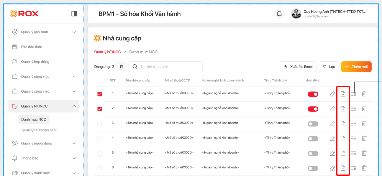 - Trưởng đơn vị/bộ phận phê duyệt thông tin đánh giá nhà cung cấp