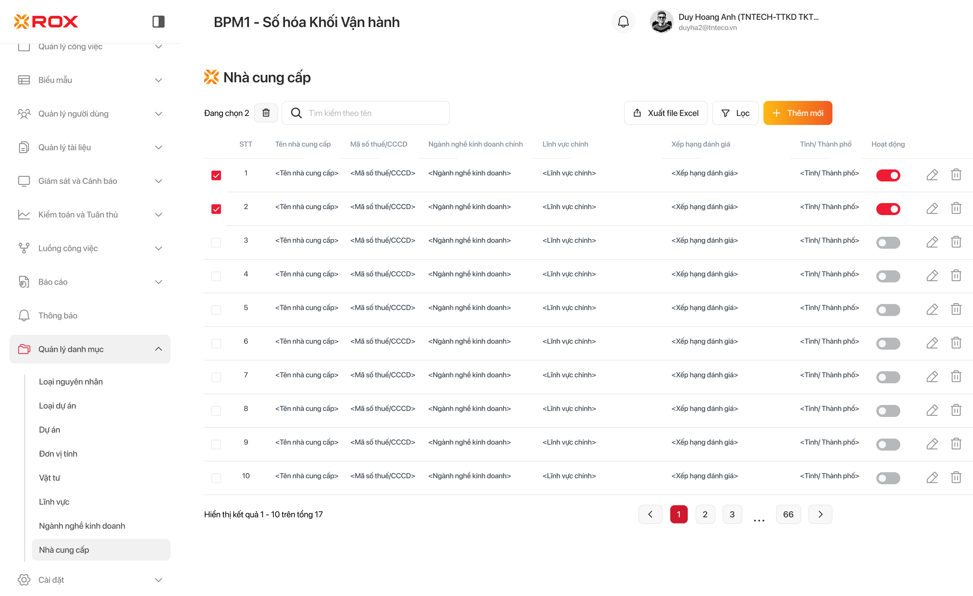 - Tôi muốn quản lý được lĩnh vực hoạt động của nhà cung cấp dưới dạng list: