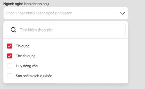 | 13 | Ngành nghề kinh doanh phụ | Lựa chọn (Select) | Không bắt buộc | Không cho phép thêm/sửa/xóa dữ liệu | Thể hiện trường lựa chọn (select) để khai báo thông tin Ngành nghề kinh doanh phụ cho cả 2 loại nhà cung cấp: