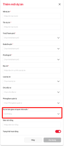 4.1.1 Bổ sung trường dữ liệu "Dự án bàn giao cơ quan nhà nước" trong màn hình "Thêm mới dự án"