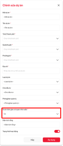 4.1.2 Bổ sung trường dữ liệu "Dự án bàn giao cơ quan nhà nước" trong màn hình "Chỉnh sửa dự án"