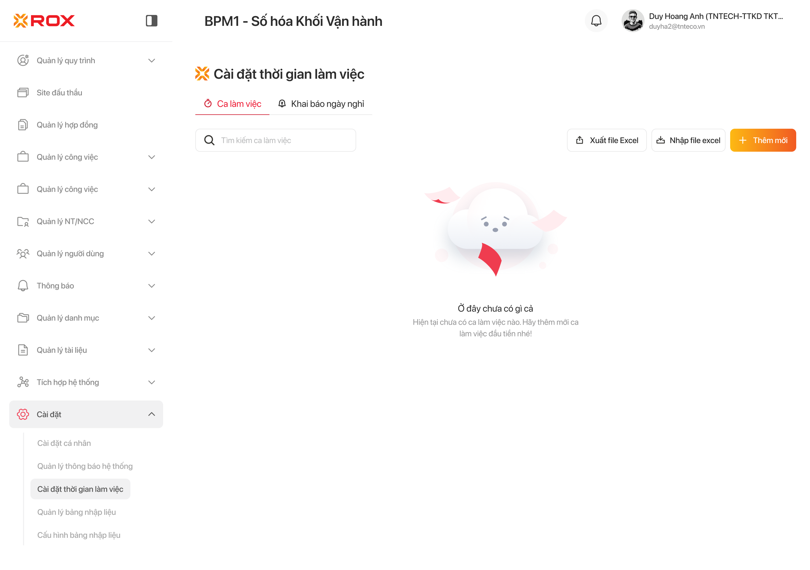 - Cho phép Cài đặt thời gian của ca làm việc theo file BPM1_CALAMVIEC.xlsx
