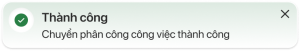 | 2 | Nút "Áp dụng" | Nút chức năng (Button) | Không bắt buộc | Cho phép người dùng nhấn nút "Áp dụng" để hoàn thành công việc. Khi nhấn nút hệ thống sẽ kiểm tra dữ liệu như sau: Trường hợp thành công: Điều kiện: người được phân công trạng thái hoạt động Hành vi hệ thống: Hệ thống hiện toast thông báo "Chuyển phân công công việc thành công"