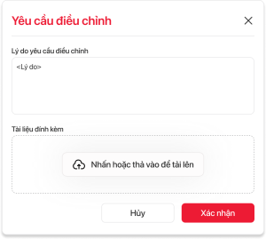 Cho phép người dùng nhấn khi cần điều chỉnh thông tin, hiện thị ra màn pop up có trường nhập ghi chú và có thể tải file đính kèm