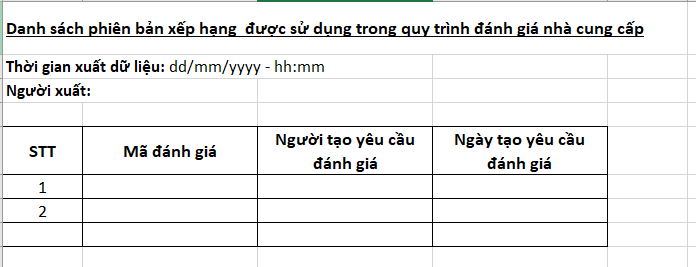 | 2 | Danh sách mã đánh giá | Button | Cho phép tải xuống danh sách lỗi bao gồm các cột thông tin