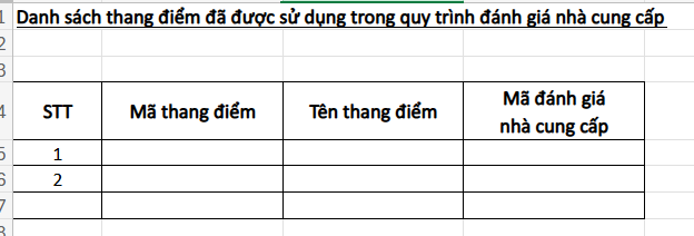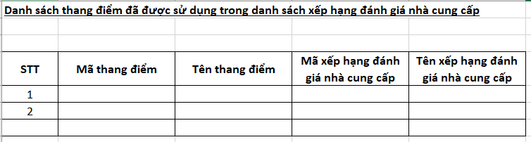 Mẫu file excel xuất trả ra: form danh sách thang điểm vừa sử dụng trong quy trình vừa xếp hạng NCC