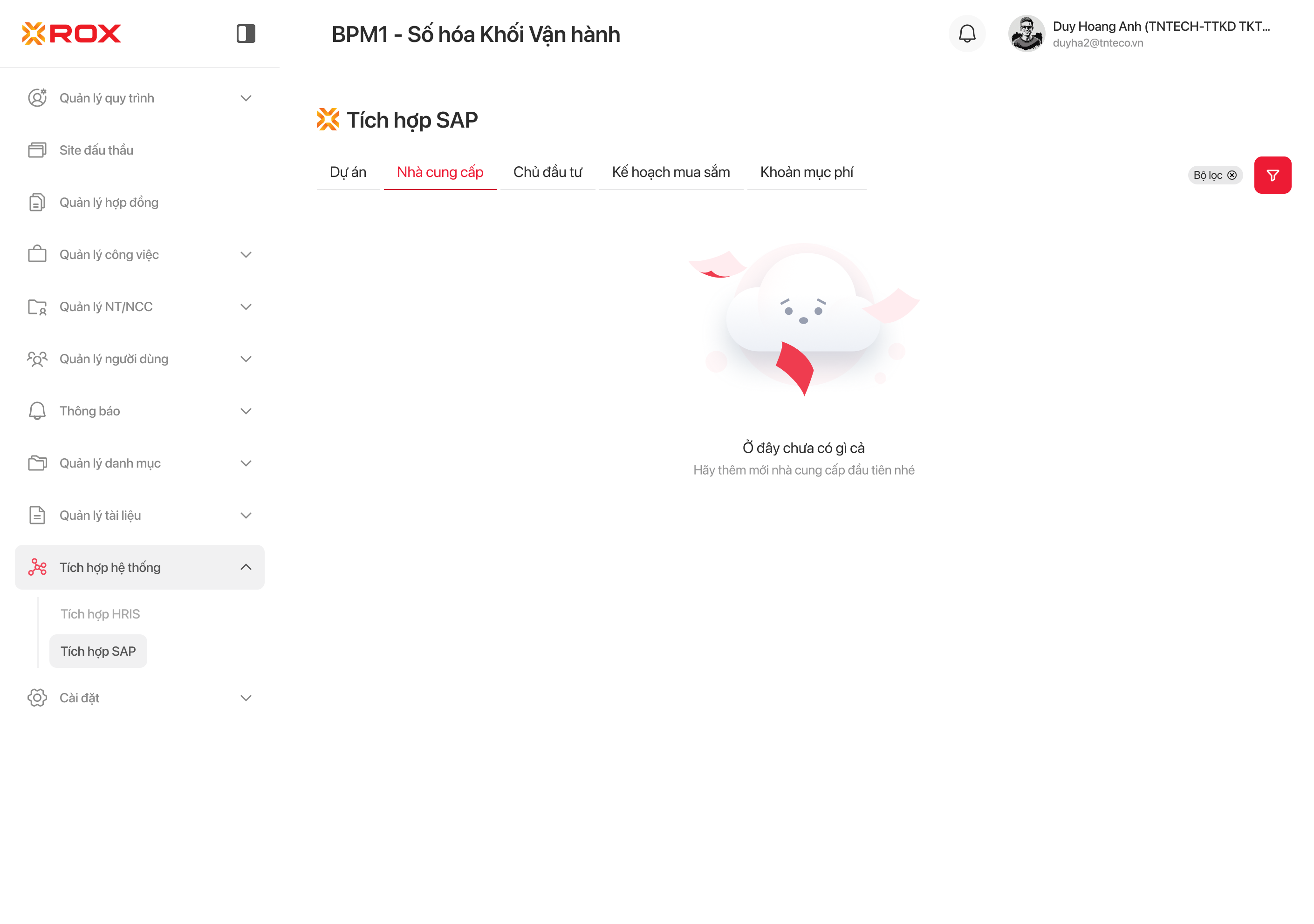 3.1.1. Màn hình Tích hợp SAP - Tab nhà cung cấp