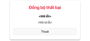 | 3 | Nút Thoát | Nút chức năng (Button) | Không bắt buộc | - Hệ thống hiển thị nút chức năng thoát - Sau khi nhấn hệ thống cho phép thoát khỏi màn hình pop-up cảnh báo Đồng bộ thất bại | Thể hiện nút chức năng cho phép thoát khỏi màn hình pop-up cảnh báo Đồng bộ thất bại |