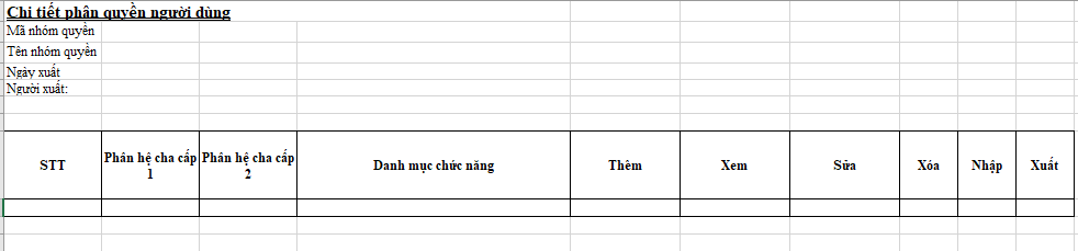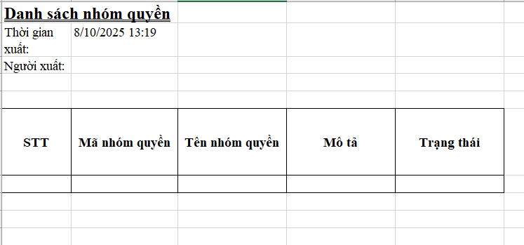 Microsoft Excel Spreadsheet Danh sách nhóm quyền.xlsx 9 kB Vũ Thị Mơ Oct 17, 2025 15:35